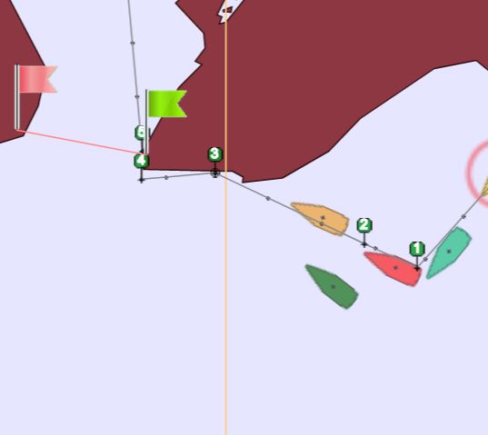 Tandis que Kerbisou me semble être au 140 pour gagner le coin, notre :evil: de Z* à retardé son empannage tenter le saut. Il m’apparaît bien qu'il est au 130 soit 1,5 Nds de plus que Kerbisou -