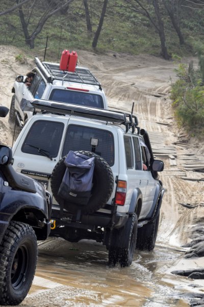 quand on débarque, on roule sur la plage en file indienne si la marée le permet car les chemins intérieurs sont peu praticables